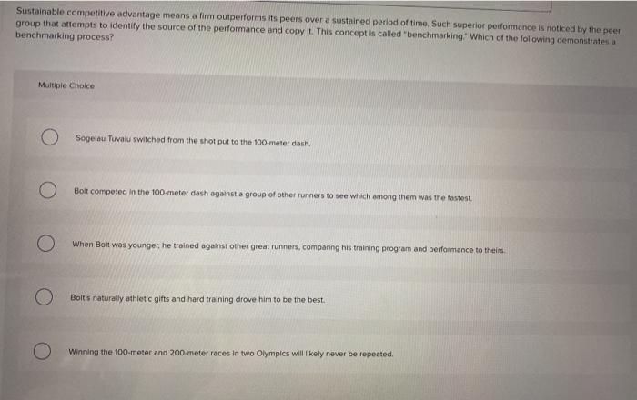 Solved Sustainable Competitive Advantage Means A Firm Chegg Com
